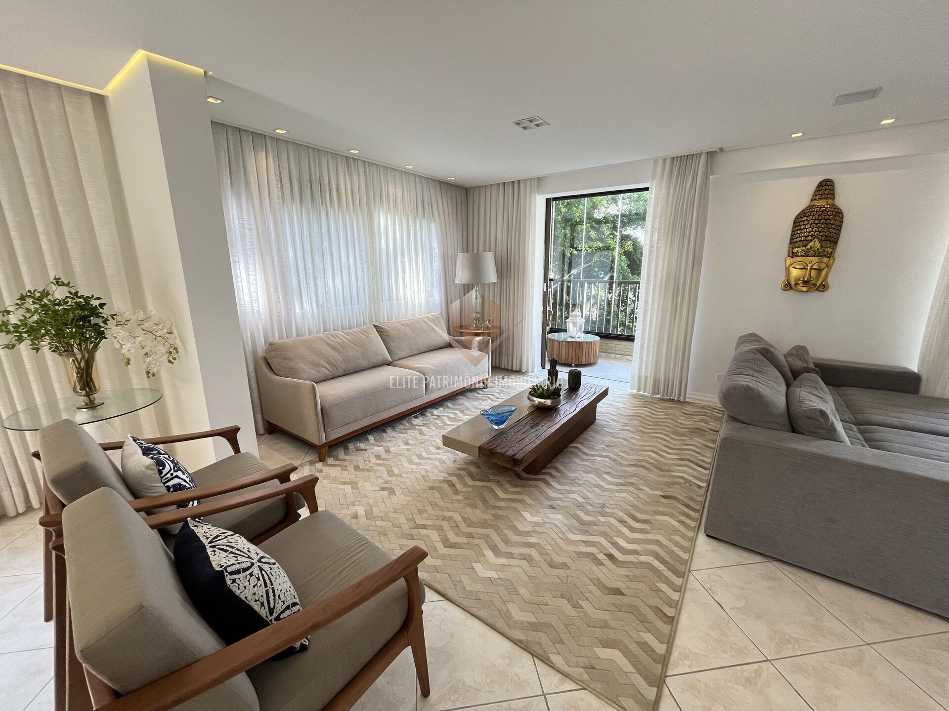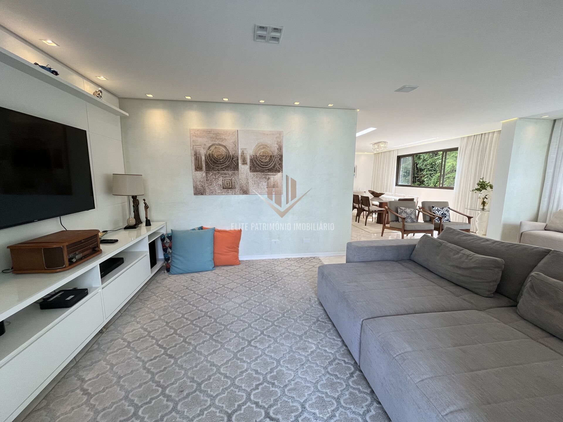 • Sala ampla em três ambientes, com excelente iluminação e ventilação cruzada, integrando espaço de estar, jantar e TV de forma harmônica e confortável. Ideal para momentos em família ou para receber convidados com elegância.