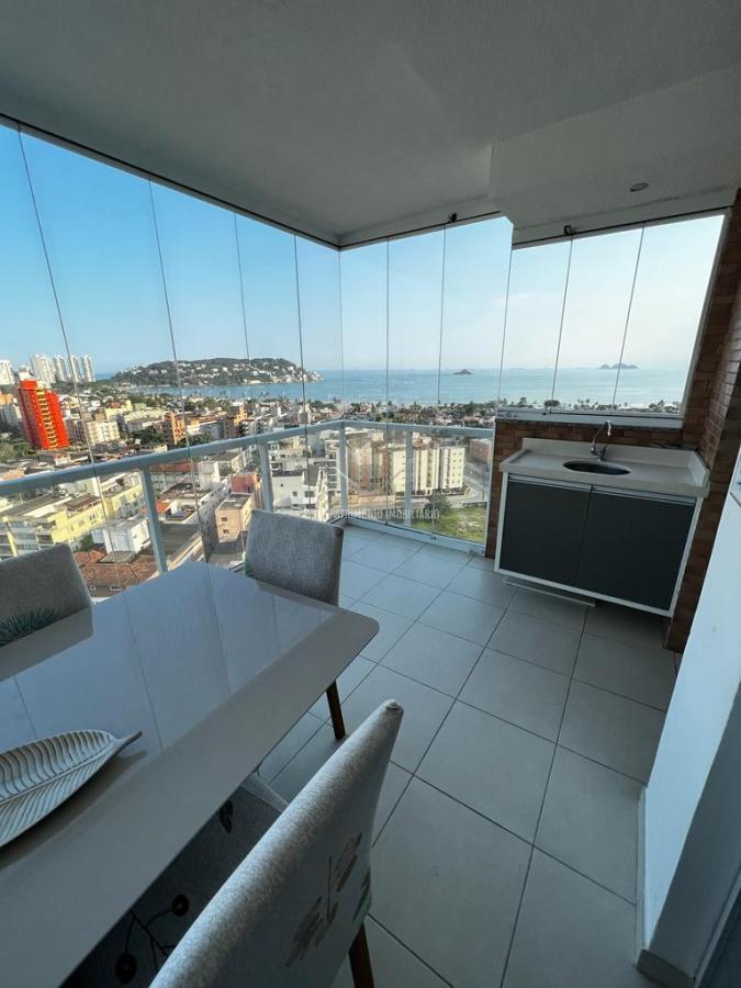 Região dos Restaurantes, 500 metros da praia, próximo a Restaurantes, Panificadora, Pizzaria, Supermercados (Extra e Dia), Farmácias, Casa Lotérica, Postos de Combustíveis e comercio em geral. Apartamento no décimo sexto andar de 2 dormitórios sendo suíte, banheiro social, sala para 2 ambientes, terraço gourmet, vista total para o mar, cozinha americana com armários planejados, area de serviço, 78 metros de área útil, 2 vagas na garagem. Prédio de 23 andares, sendo 4 apartamentos por andar, lazer (Piscina, Churrasqueira, Salão de festas, Salão de Jogos, Academia e Sauna), 2 elevadores, portaria 24 horas, gás encanado, portões automáticos.