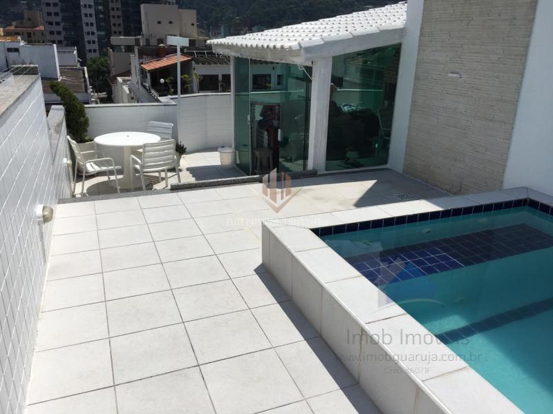 Região dos Hotéis, 200 metros da praia, próximo de mercados, restaurante, pizzaria, panificadora, farmácia, bancos e posto de combustível, Excelente cobertura triplex de 3 dormitórios sendo 1 suíte, sala para dois ambientes com sacada, banheiro social, lavabo, cozinha com armários, área de serviço, dormitório e banheiro de empregada, 2 vagas de garagem demarcada, 267 metros de área útil, com piscina e churrasqueira com vista para o mar, (outras opções www.imobguaruja.com.br). Prédio de 5 andares sendo 3 cobertura por andar,1 elevador, portões automáticos, salão de jogos, churrasqueira, sauna, portaria 24hs e serviço de praia.