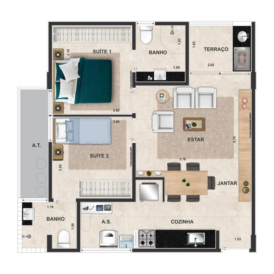 - Cômodos: Área de Serviço, Cozinha,
