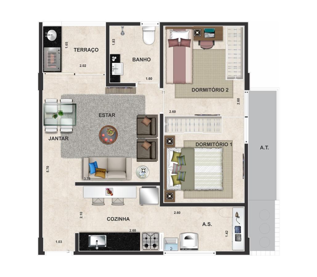 2 Dormitórios1 Banheiro2 Vagas