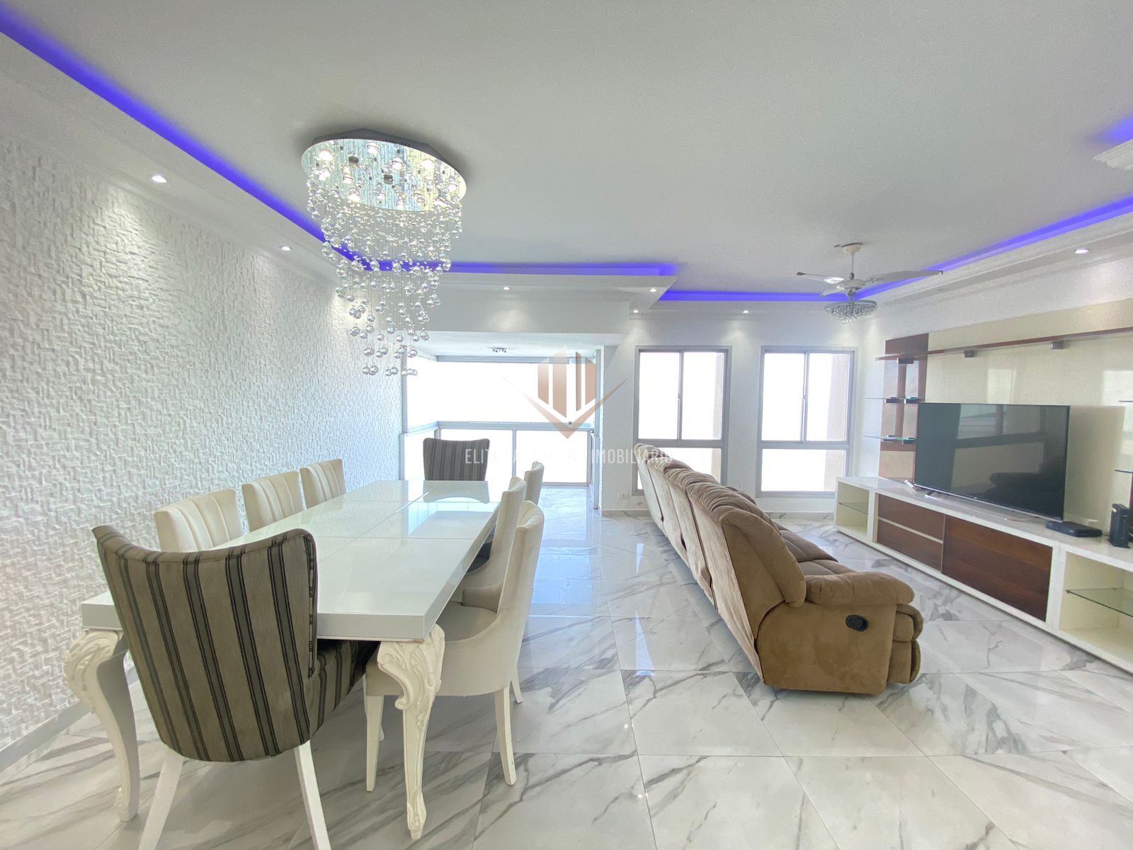 Sala ampla com dois ambientes;