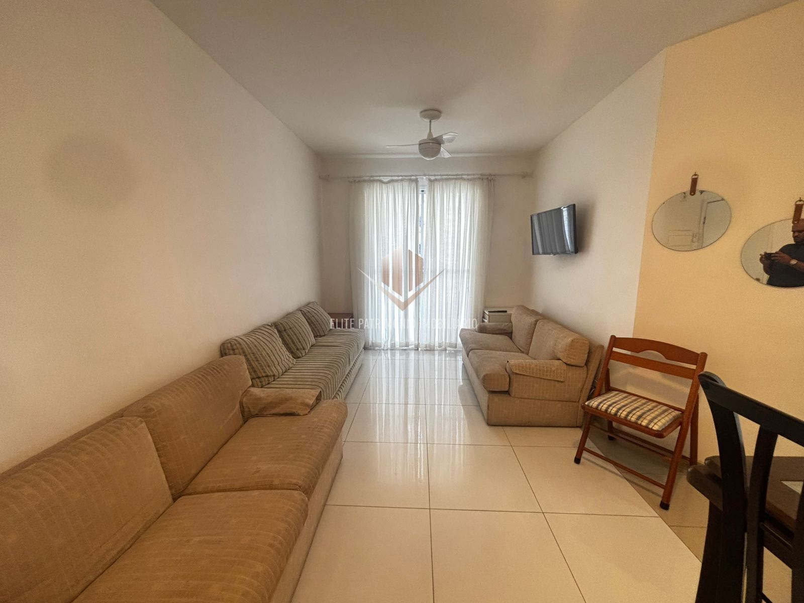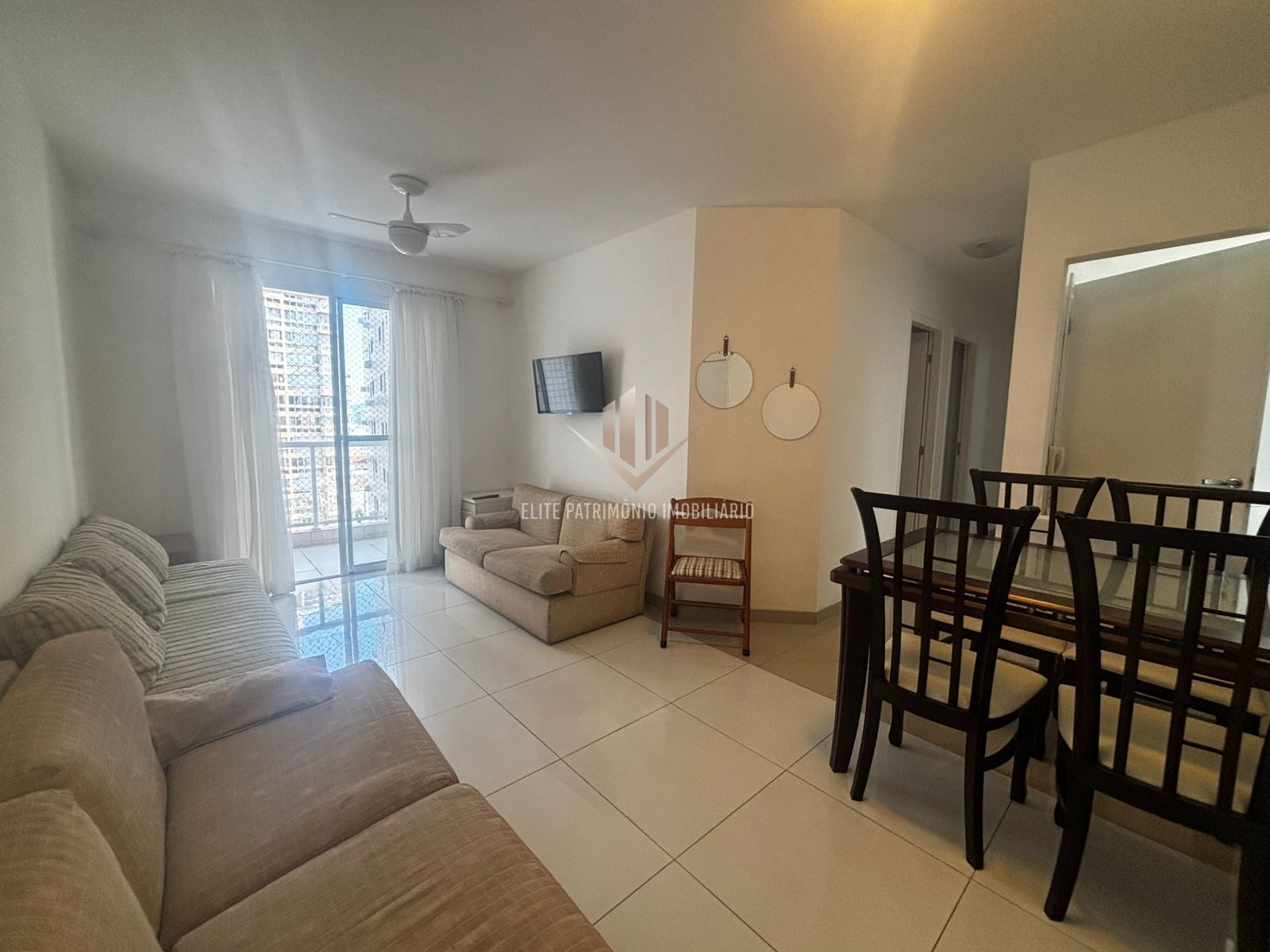 No imóvel uma sala para 2 ambientes com sacada, 3 dormitórios sendo 1 suíte com sacada, 1 banheiro social, cozinha com móveis e área de serviço.
