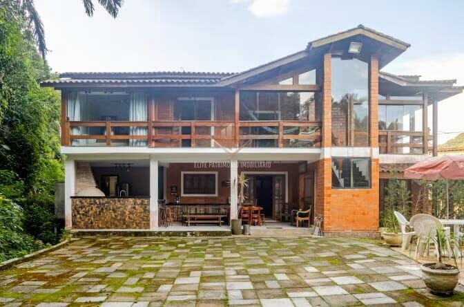 As áreas sociais são amplas e acolhedoras: varandas envidraçadas e mobiliadas, sala de estar, sala de TV e sala de jantar, proporcionando integração e bem-estar. A cozinha completa com despensa e a lavanderia coberta oferecem praticidade no dia a dia. Para momentos de lazer e convivência, a casa dispõe de espaço gourmet com churrasqueira e forno de pizza, excelente piscina, banheiro externo, lareira ao ar livre, além de belos jardins e áreas verdes que completam o charme rústico do imóvel.