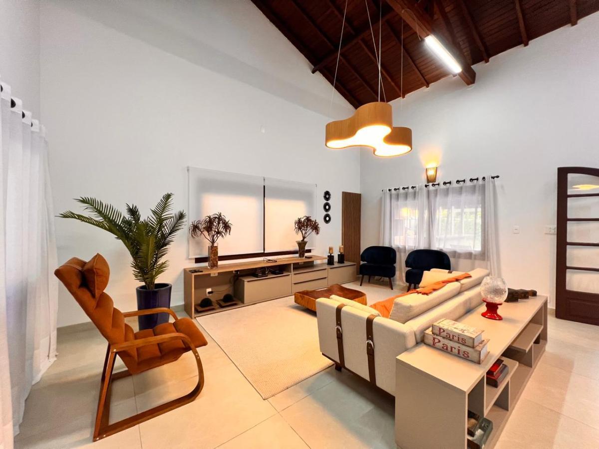 Casa térrea com 4 dormitórios, sendo 4 suítes, possui 6 banheiros, 4 vagas de garagem, 2 salas, piscina, área gourmet com churrasqueira, encontra-se mobiliado, localizado em condomínio.